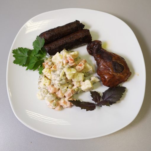 S kosilom smo v telo vnesli okoli 25 % dnevnih potreb po kalorijah (497 kcal od 2000 kcal) in pri tem smo zaužili prav tako 25 % dnevnih potreb po maščobah, 93 % po vlakninah, ki imajo v prehrani pomembno vlogo, saj ugodno učinkujejo na prebavo. Vplivajo na obnavljanje in delovanje črevesne sluznice, ker spodbujajo izločanje sluzi in hormonov. Zaužili smo tudi kar 35 % dnevnih potreb po beljakovinah.